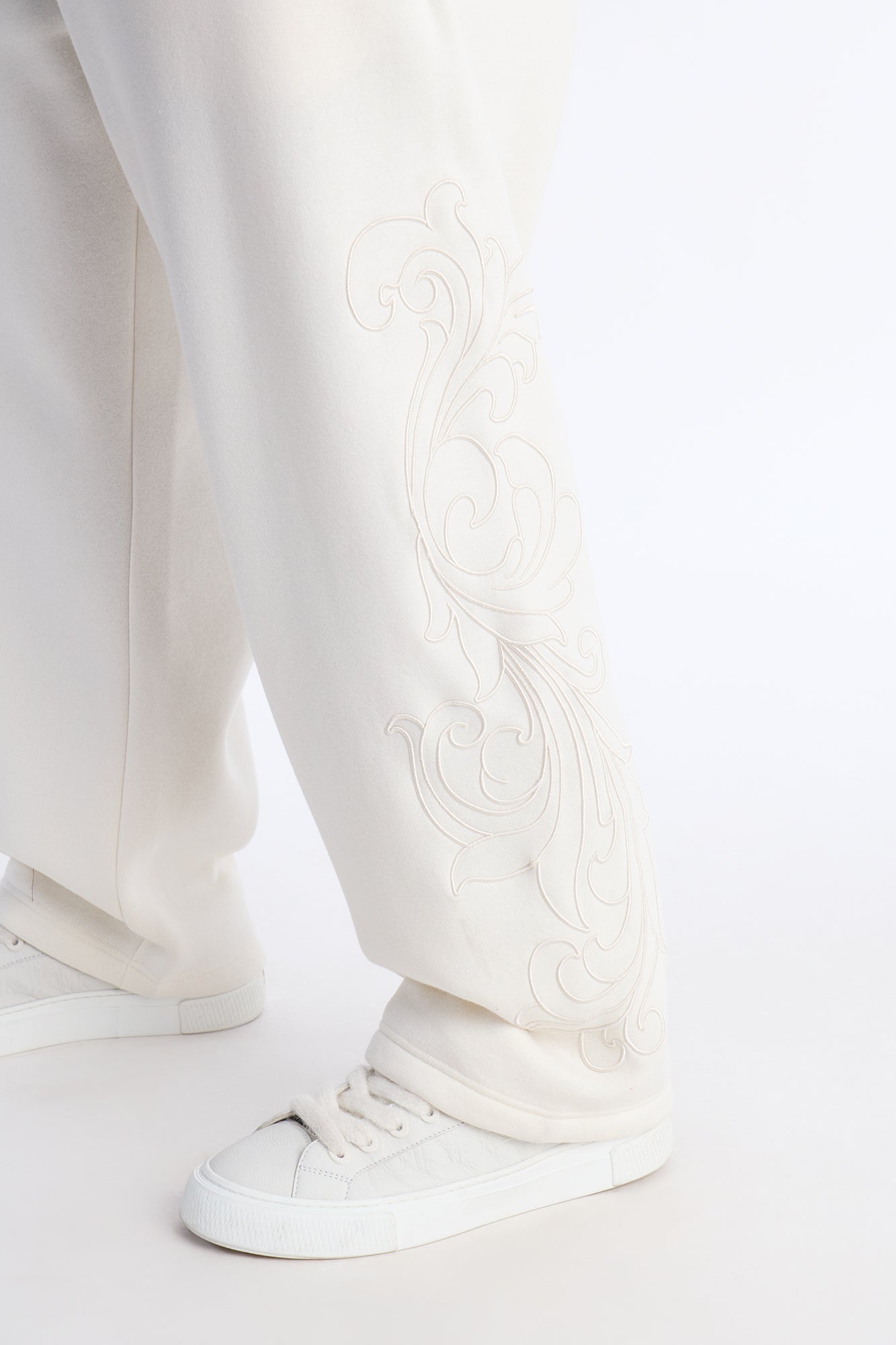 Embroidery Fleur Straight Sweatpants - Cream